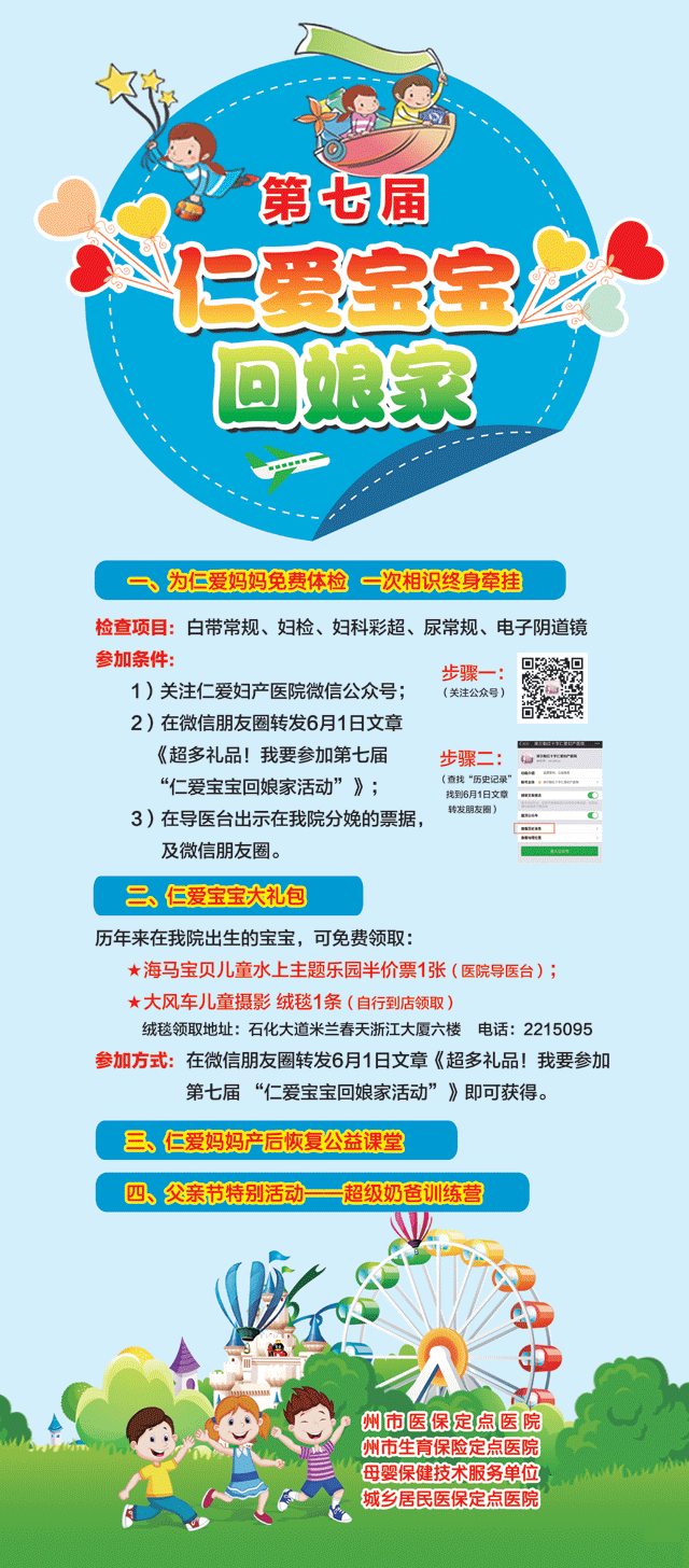 据了解,“仁爱宝宝回娘家”活动,今年已经是第七届。除了产后康复公益课堂外,还有为历年在医院分娩的仁爱妈妈免费体检、预约分娩赠送大礼包、仁爱宝宝专属礼物、超级奶爸训练营等。