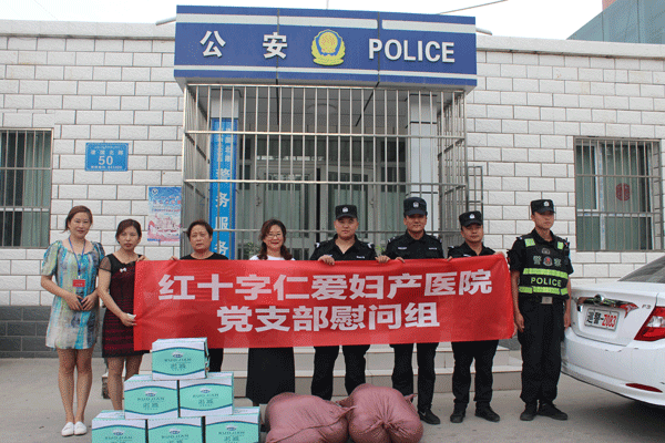 近日,在建军节来临之际,仁爱医院党支部慰问了警务站维稳工作者,为他们送去了西瓜、矿泉水等防暑降温物品。