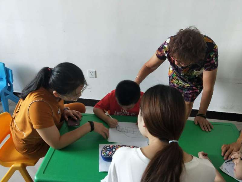 当天,在训练教室内,医生们与孩子亲密接触,和老师亲切交谈,详细询问孩子们的教育康复情况。开始孩子们有点认生,可渐渐地,孩子们在老师和医生的鼓励下,大家一起学习、玩游戏,做运动等。慢慢地孩子们露出了笑容,用稚嫩的声音说着:谢谢!
